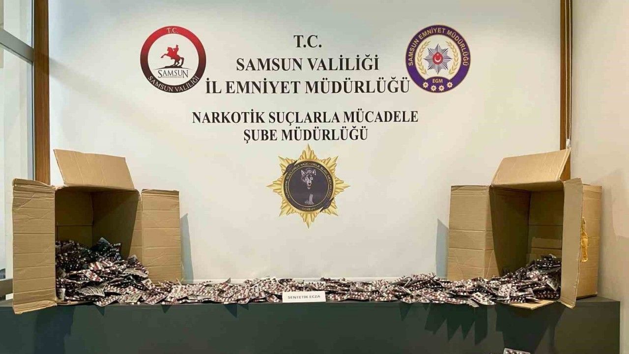 Samsun’da polis ekiplerinin düzenlediği operasyonda bir evin gardırobuna gizlenmiş koliler içinde 47 bin 824 adet sentetik ecza ele geçirildi.
