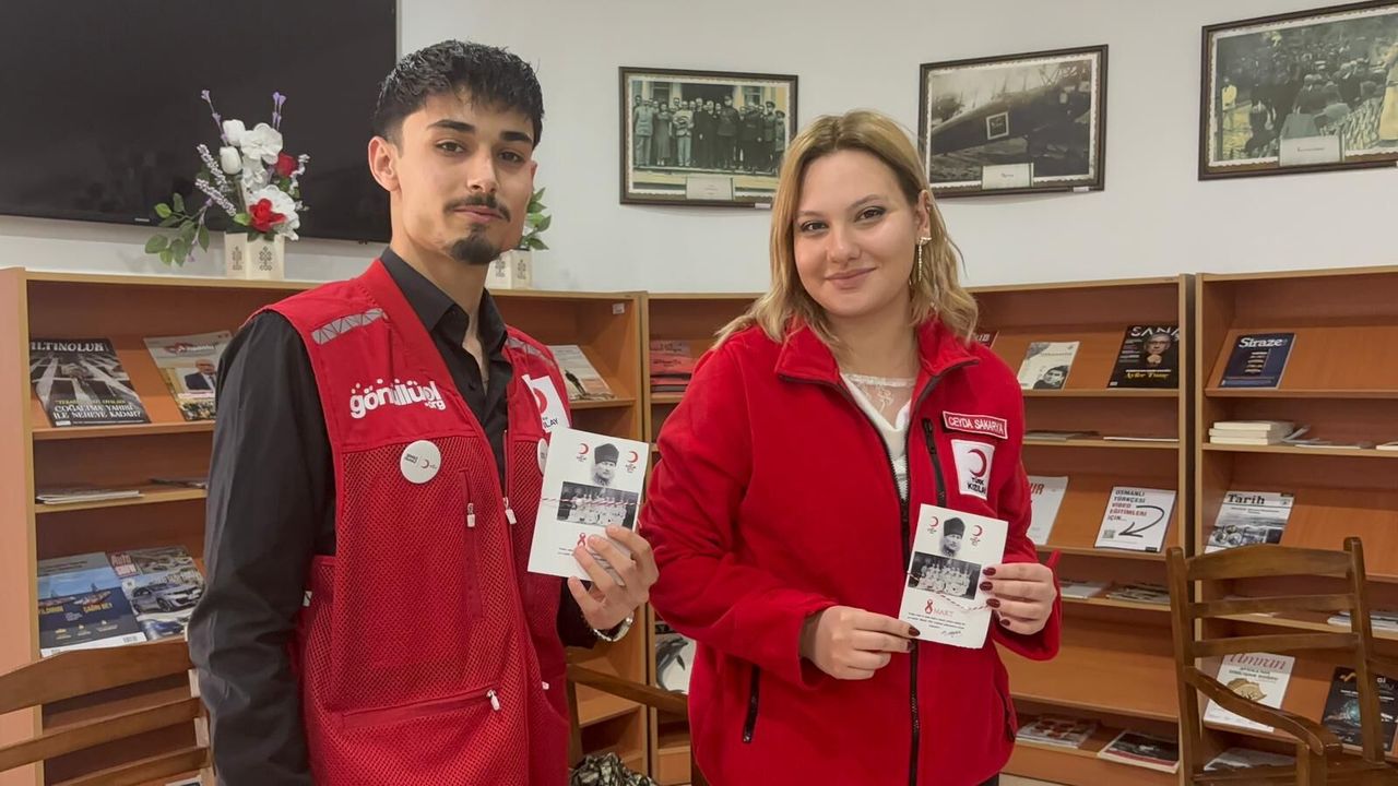 Genç Kızılay gönüllüleri, Kadınlar Günü dolayısıyla hazırladıkları kırmızı-beyaz iplerden oluşan marteniçkaları kadınlara dağıtarak günün anısına küçük bir hatıra sundu.