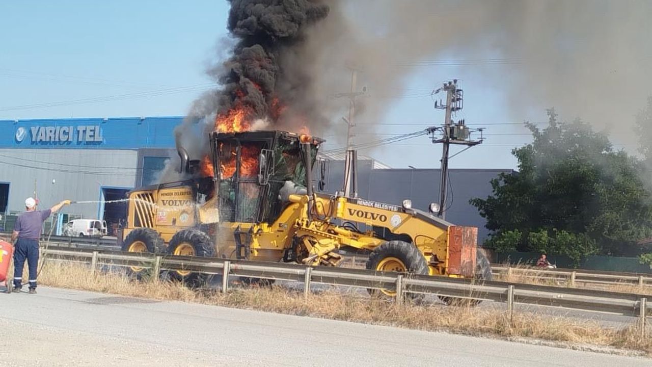Sakarya D-100 kara yolunda yolda seyir halindeyken alev topuna dönen Hendek Belediyesi'ne ait greyder, itfaiyenin müdahalesiyle söndürüldü.
