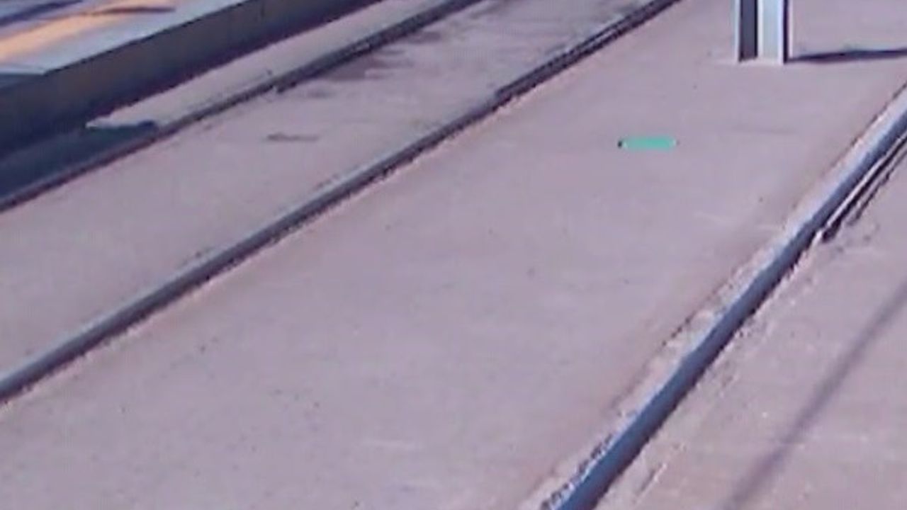 Kayseri’de tramvay yolunda karşıya geçmeye çalışan yayayı kazadan duraktaki güvenlik görevlisinin dikkati kurtardı.
