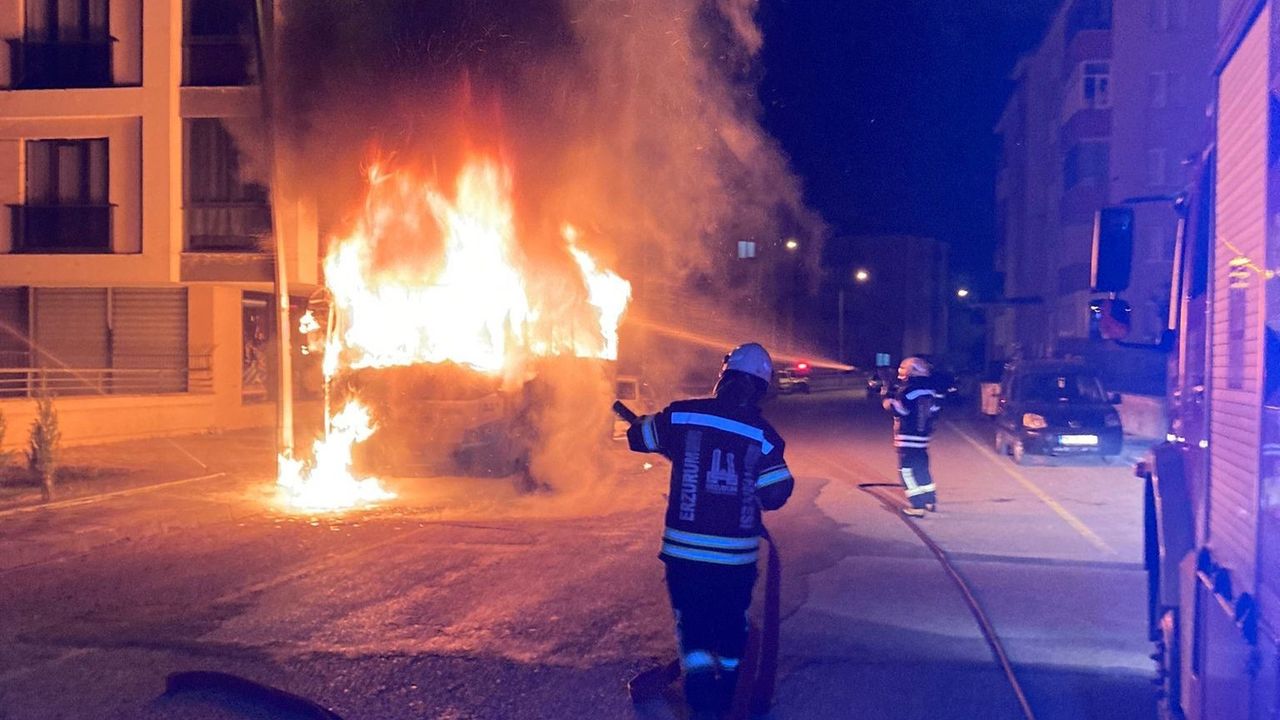 Erzurum’un Palandöken ilçesi Hüseyin Avni Ulaş Mahallesi 214. Sokak’ta park halindeki araç bir anda alev aldı. Vatandaşların ihbarı üzerine olay yerine itfaiye, polis ve sağlık ekipleri sevk edildi. Adeta alev topuna dönen araç yangını çevredeki vatandaşları da korkuttu. Erzurum Büyükşehir Belediyesi İtfaiye Daire Başkanlığı ekipleri tarafından yapılan açıklamada, "Yanan özel halk otobüsü merkez itfaiye ekiplerimiz tarafından söndürüldü" denildi.