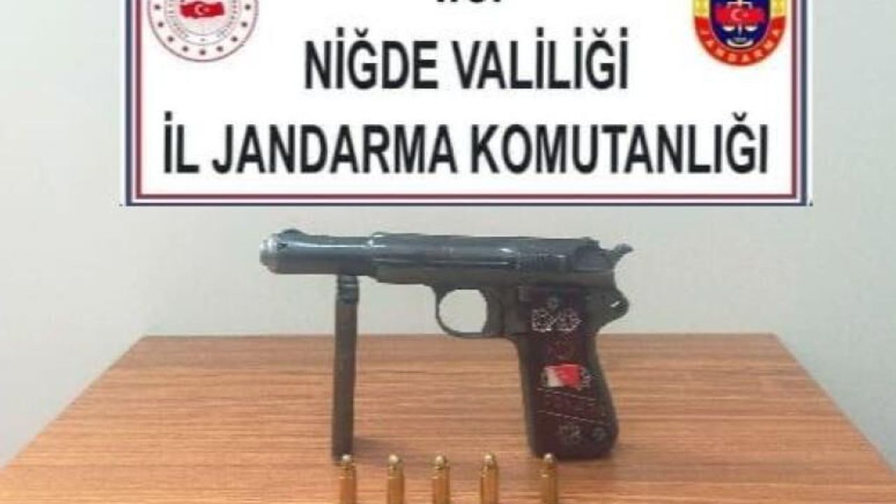 Bor İlçesine bağlı Kemerhisar beldesinde havaya rastgele ateş açan 1 kişi jandarma ekipleri tarafından yakalandı. Jandarma ekiplerinin şüphelinin evinde yaptığı aramada 1 adet Ruhsatsız tabanca, 1 adet şarjör ve şarjöre takılı vaziyette 5 adet fişek ele geçirildi.
