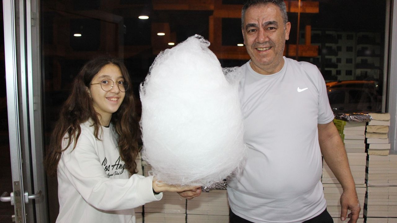 Amasya Kültür Derneği’nin Ramazan ayında öğrencilere yönelik düzenlediği programda iftar veren 51 yaşındaki Kurt, programın sonunda beraberinde getirdiği tezgahta elleriyle pamuk şeker yapıp dağıttı. 6 Şubat 2023’teki asrın felaketinin ardından gittiği deprem bölgesinde kendisinden pamuk şeker isteyen çocuklardan etkilenip bu renkli iş için kolları sıvayan evli ve 4 çocuk babası Kurt, "Pamuk şeker makinesini satın alıp hazırlanmasını öğrendim. Sonra deprem bölgesinde pamuk şeker yapıp dağıttım. Amasya’ya döndüğümde ise okullardaki, derneklerdeki etkinliklere katılıp çocuklara ücretsiz pamuk şeker yaparak yüzlerini güldürmeye çalışıyorum" dedi.