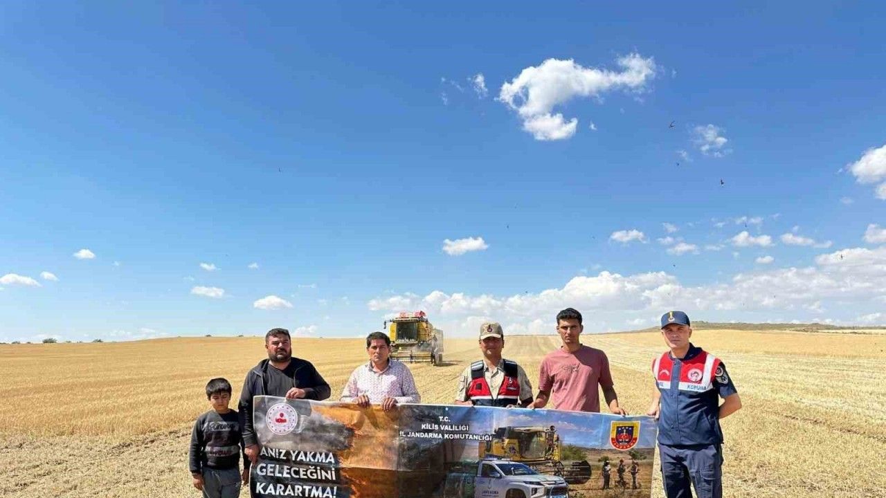 Kilis’in Polateli ilçesinde jandarma ekipleri, arpa ve buğday hasadı yapan çiftçilere anız yakmanın çevreye zararları ve yasal yaptırımları hakkında bilgilendirmede bulundu.