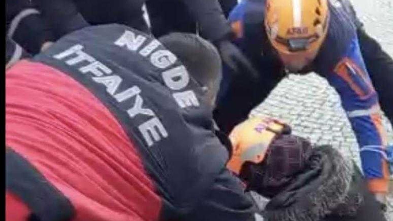 NİĞDE Kalesi'nde geziye çıkan Rukiye Ulusoy (47), bastığı zeminin çökmesi sonucu kaçak kazı yapan definecilerin açtığı 200 metre uzunluğundaki tünele düştü. Bu sırada tünelde bulunan 2 kişi kaçarken, Ulusoy düştüğü yerden ekipler tarafından kurtarıldı.