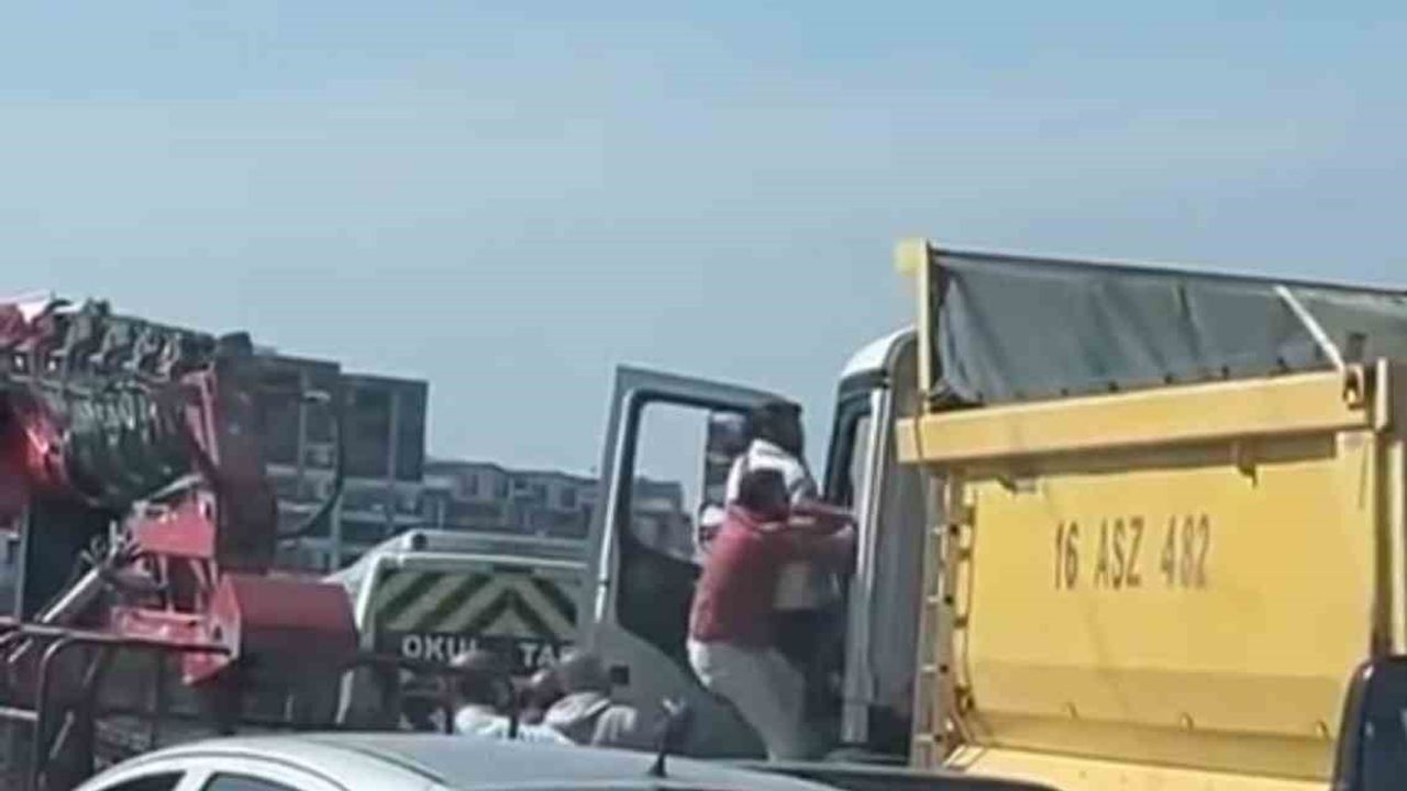 Olay, merkez Yıldırım ilçesi Millet Mahallesi mevkiinde meydana geldi. Akşam trafiğinin yoğun olduğu saatlerde seyir halindeki bir otomobilin sürücüsü ile anayolda ilerleyen kamyon sürücüsü iddiaya göre yol verme tartışması nedeniyle kavgaya tutuştu. Öfkeli otomobil sürücüsü, araçtan indiği arkadaşıyla kamyonun kupa kısmına tırmanıp, kamyon şoförünü darp etti. O anları gören bazı vatandaşlar kavgaya tutuşan tarafları ayırmaya çalışırken, kimisi de klaksonlarla tepki gösterdi. Tarafların güçlükle ayırıldığı kavga anı ise amatör kameraya yansıdı.