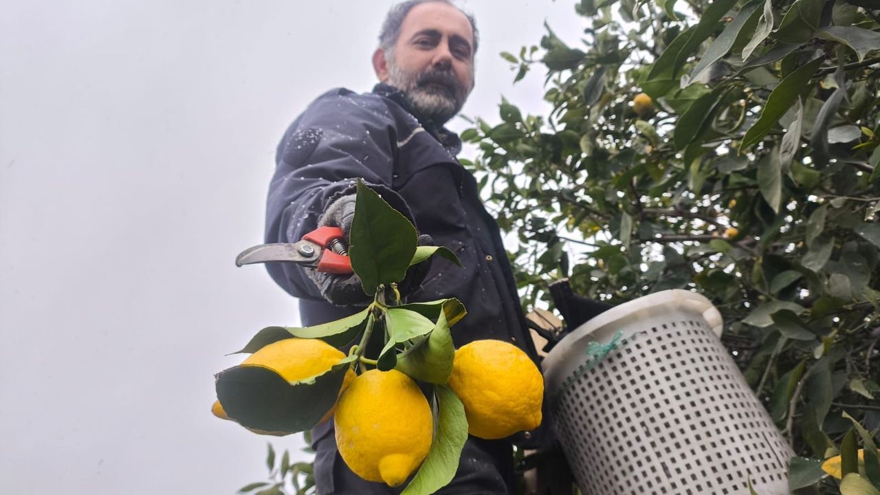 Kar yağışı altında limon hasadı kısa sürse de ayrı bir görsel şölen sundu. Yaklaşık 10 dakika etkili olan kar tutmadan eridi.