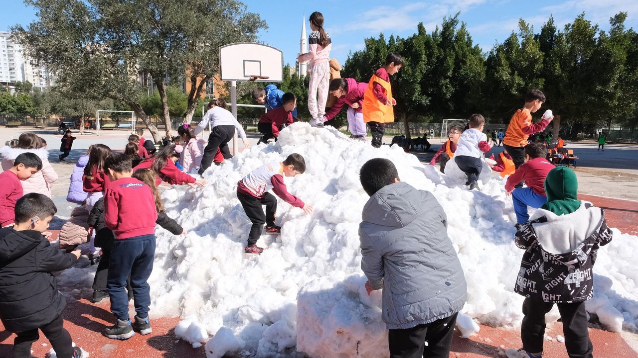 Ülkenin birçok noktasında kar yağışı etkisini gösterirken kara hasret olan Adanalı çocuklar için Adana Büyükşehir Belediye Başkanı Zeydan Karalar, okul bahçelerine Toroslardan kar getirtti. Bahçede kar gören çocuklar kartopu oynayıp kardan adam yaptı.