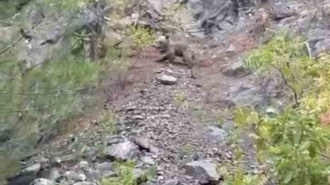 Karabük’te koşan ayı ile dağa tırmanan yavru ayı cep telefonu kameralarıyla görüntülendi.