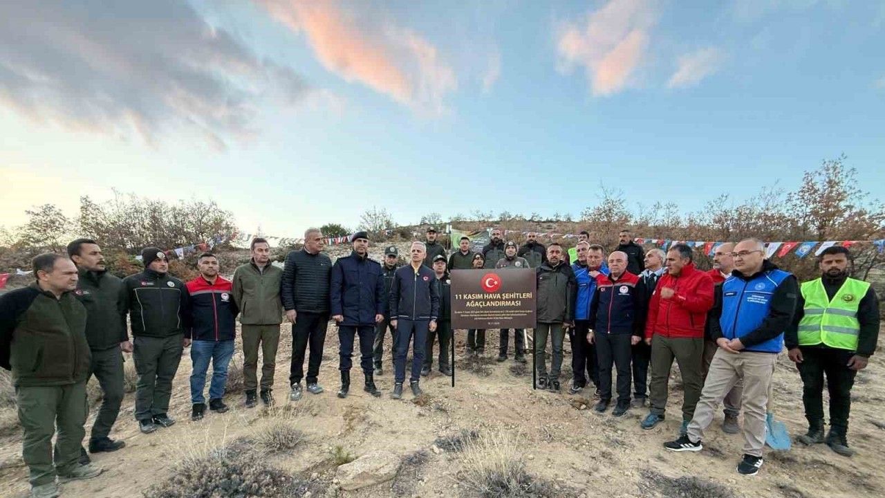 Yapılan konuşmanın ardından Vali Çiçekli ve beraberindekiler şehitlerin anısına çam fidanlarını toprakla buluştururken, ’11 Kasım Hava Şehitleri Ağaçlandırma’ tabelasını da dikti.