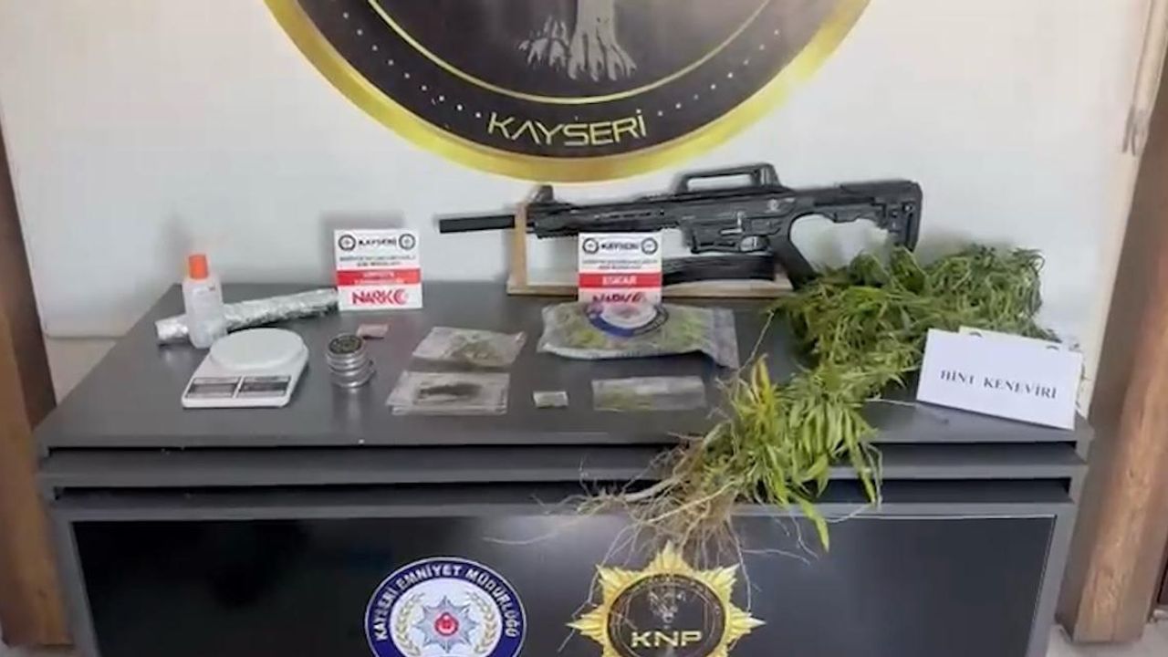 Edinilen bilgiye göre, Kayseri İl Emniyet Müdürlüğü Narkotik Suçlarla Mücadele Şube Müdürlüğü ekipleri kentte uyuşturucu madde ticareti yapan ve torbacı olarak tabir edilen sokak satıcılarına yönelik çalışma yaptı. Ekipler tarafından yapılan çalışmalarda; F.K. (36) yakalanırken, 1 adet ruhsatsız tüfek, 287 kök kenevir, 193.75 gram uyuşturucu madde, 121 gram uyuşturucu yapımında kullanılan madde ve 1 adet hassas terazi ele geçirildi.
