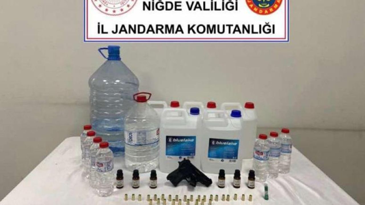 Niğde'de jandarma ekiplerinin düzenlediği sahte içki operasyonunda 1 kişi gözaltına alındı . Bor İlçesine bağlı Kemerhisar Beldesinde İl Jandarma Komutanlığı ekipleri Kaçakçılık ve Organize Suçlarla Mücadele kapsamında bir evde sahte içki üretilip satıldığı bilgisine ulaştı. Ekiplerin düzenlediği operasyonda şahsın ev ve eklentilerinde yapılan aramada 45 litre kaçak alkol,&