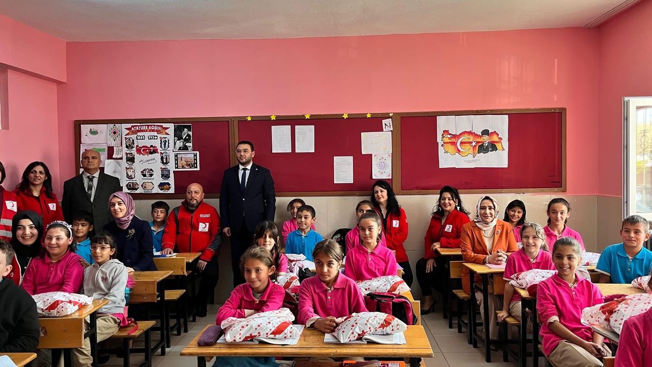 Kızılay’ın desteğiyle öğrencilerin yüzlerinde mutluluk ifadesi oluştu.