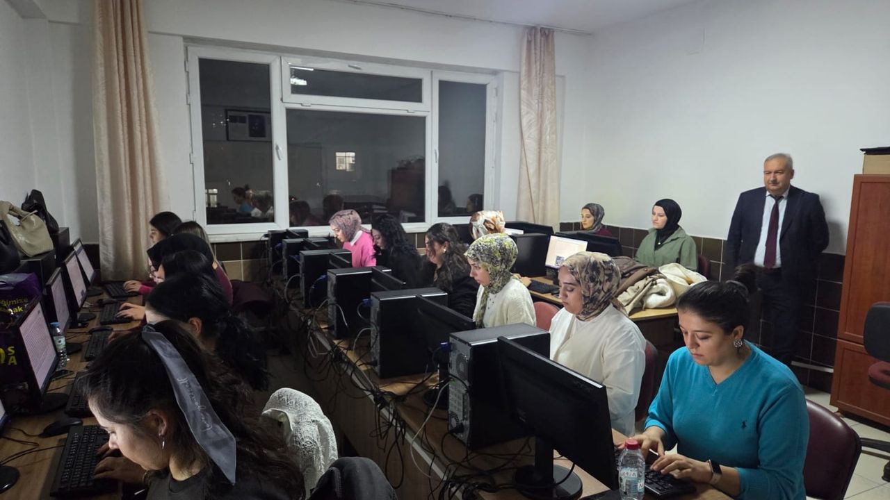 Niğde Halk Eğitimi Merkezi Ek Hizmet Binası’nda sürdürülen “Klavye Teknikleri” kursunda kursiyerler, uygulama sınavında performanslarını ortaya koydu. Kurum Müdürü Orhan Çetin, sınav sürecini takip ederek kursiyerlerin çalışmalarını gözlemledi.