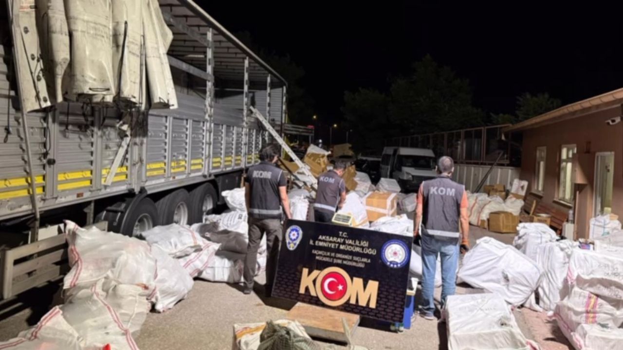 Aksaray’da KOM ekiplerinin kaçakçılara yönelik düzenlediği operasyonda yaklaşık 8 ton tütün, gümrük kaçağı tütün mamulleri ve çeşitli ürünler ele geçirildi.