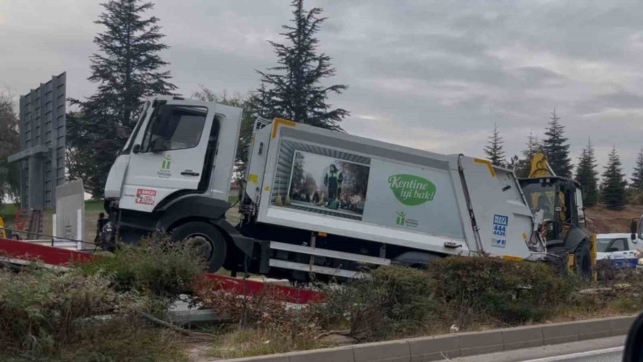 Eskişehir’de sürücüsünün kontrolünden çıkan çöp kamyonu orta refüje çıkarak ağaçları yatırdı.
