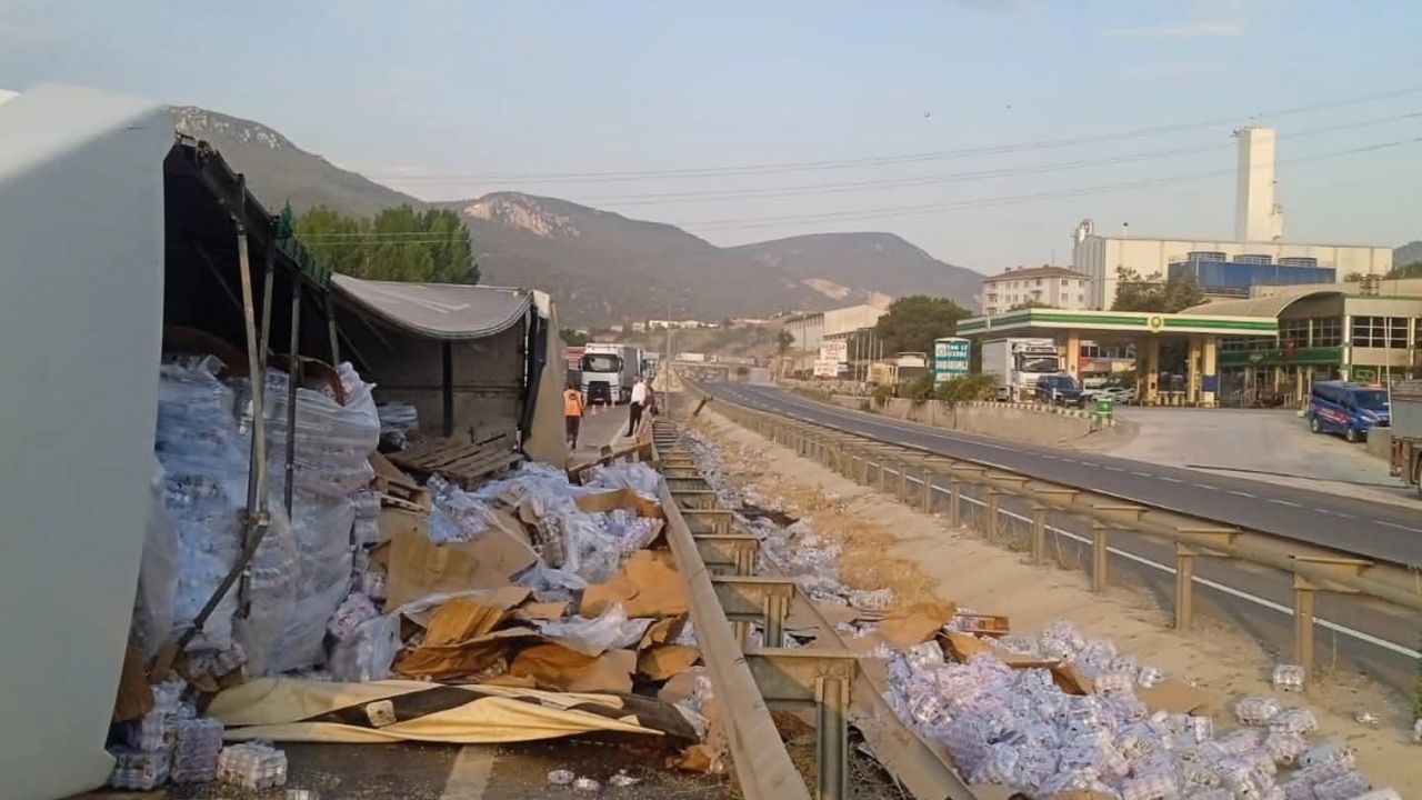Öte yandan, tırın taşıdığı su paketlerinin yola savrulması sonucu trafikte bir süreliğine ulaşıma kapandı. Kara yoluna dökülen su paketleri iş makineleriyle temizlendi. Çalışmanın ardından trafik, kontrollü olarak yeniden ulaşıma açıldı.