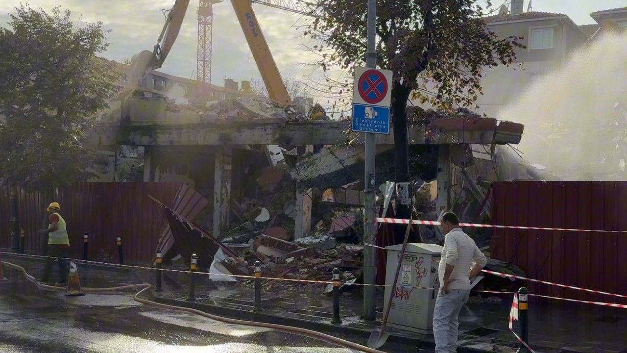 Küçükçekmece’de kentsel dönüşüm çerçevesinde yıkımı süren binanın bir kısmı aniden çöktü. Ekiplerin kısmi önlem aldığı alanda binadan kopan büyük parçalar, yola savruldu.