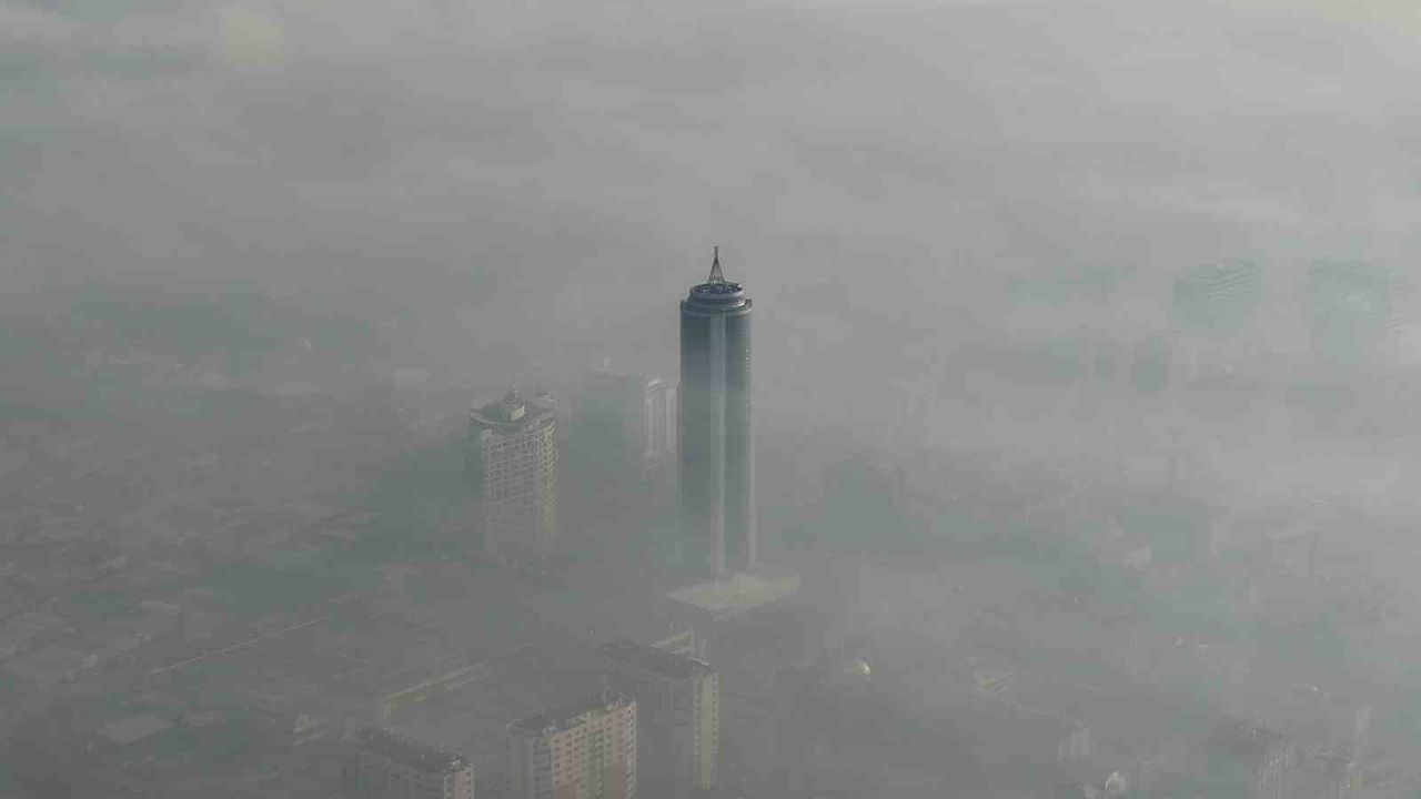 Konya kent merkezinde sabah saatlerinde etkili olan yoğun sis, havadan dron ile görüntülendi.