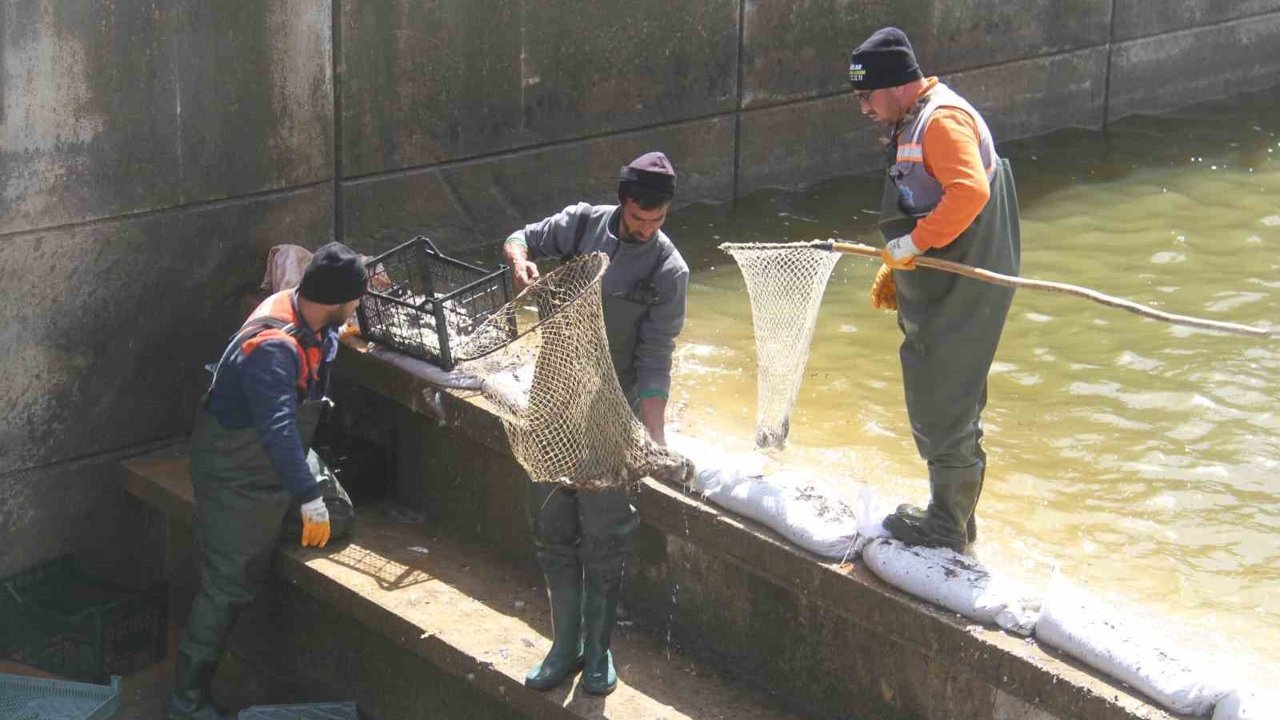 Konya'nın Beyşehir ilçesindeki Beyşehir Gölü'nden kanala sürüklenerek mahsur kalan binlerce balık, yürütülen çalışma ile kurtarılarak yeniden doğal yaşam alanlarına bırakıldı.