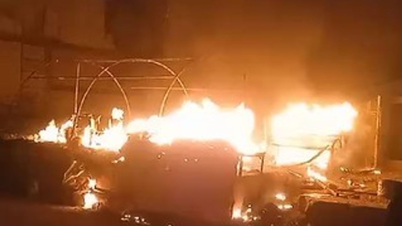 Hatay'ın Antakya ilçesinde kümes olarak kullanılan çadır alevlere teslim oldu.