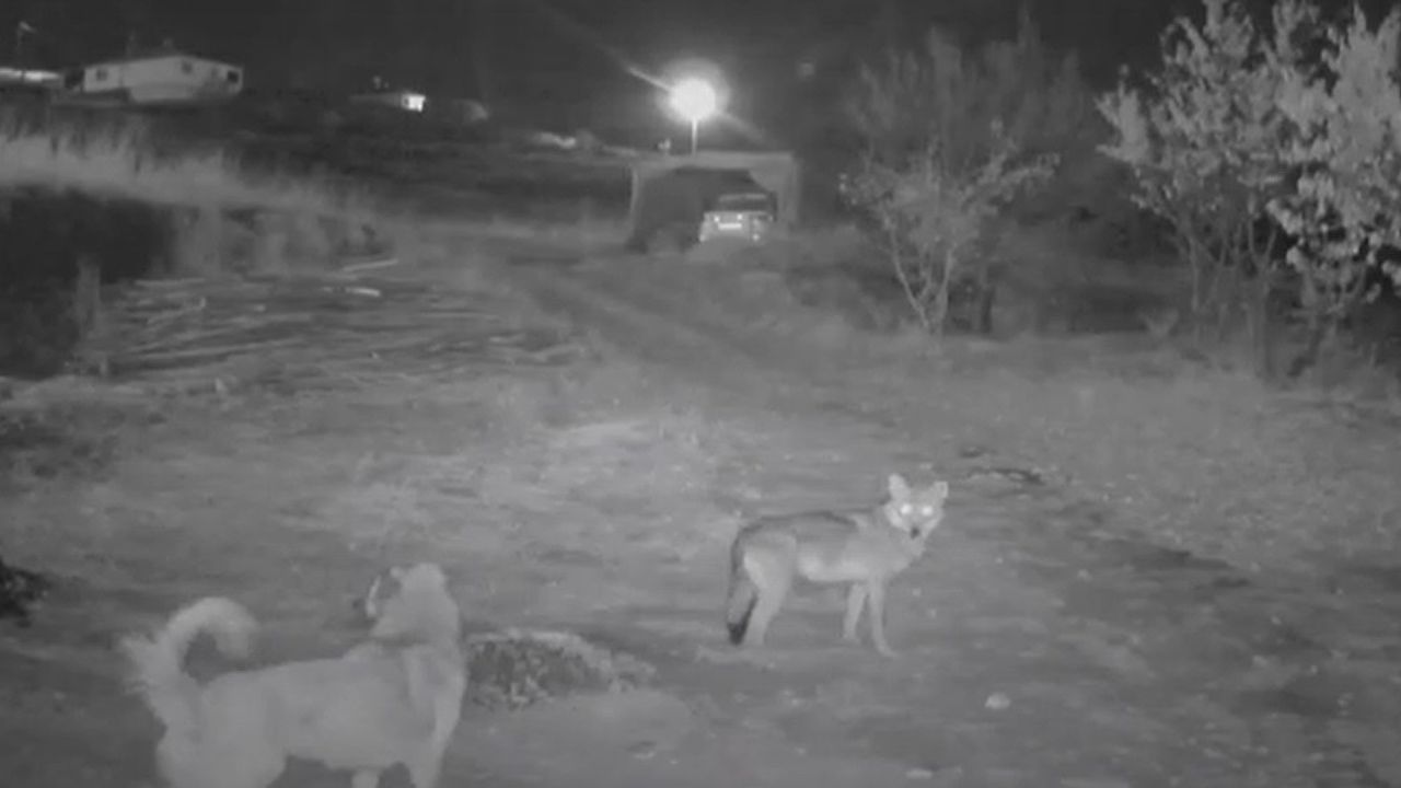 Kemah’ta yerleşim alanına kadar inen kurt, evin önünde bulunan kendisinden cüsse olarak büyük köpeği tuzağa çekmeye çalıştı. Saat 18. 30 sıralarında köpeğin yanına kadar yaklaşan kurt, köpeğin kendisine tepki vermemesi üzerine etrafında dolanarak tuzak kurdu. Köpeği üst tarafta gizlenen kurtların yanına çekmeye çalışan kurdun kurnazlığı güvenlik kamerasına yansıdı.