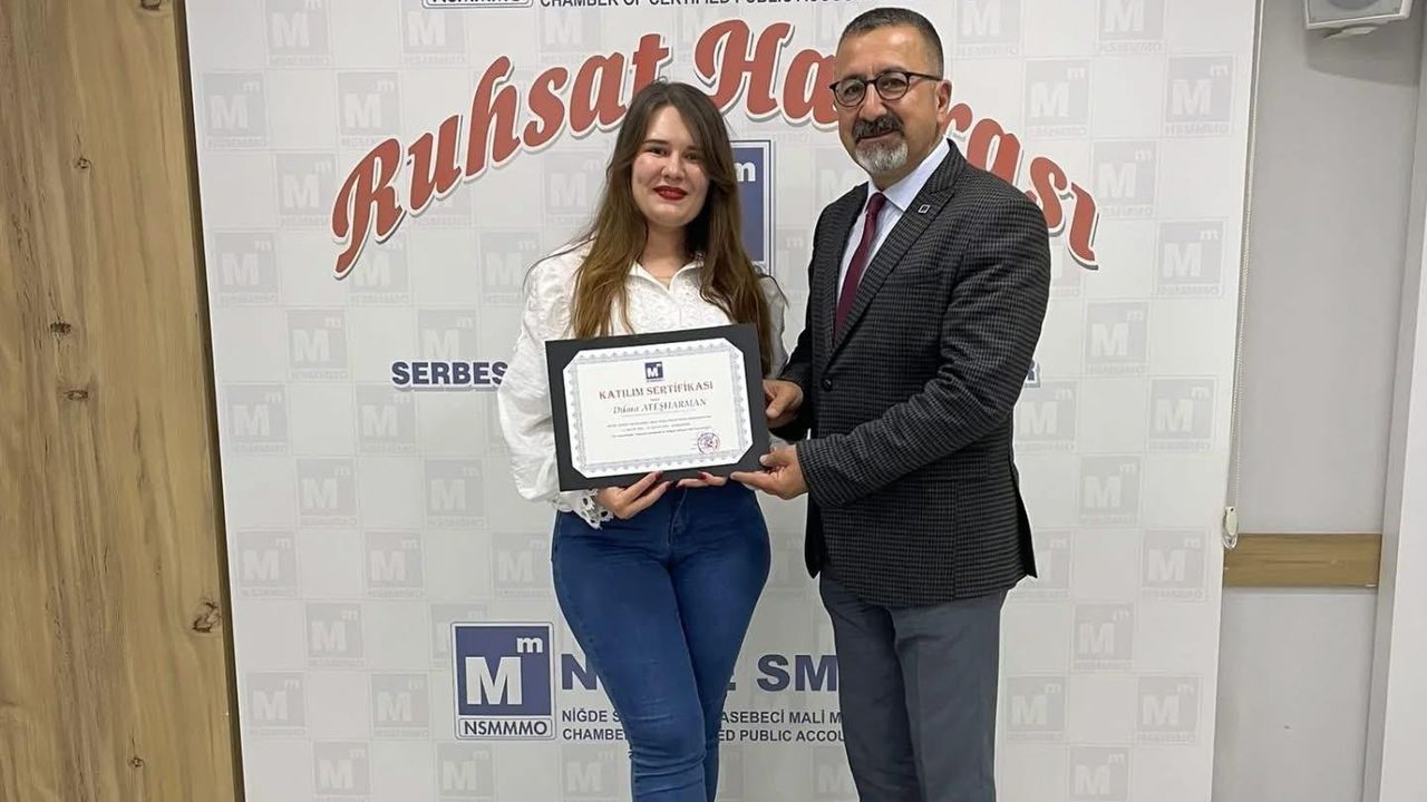 Niğde Serbest Muhasebeci Mali Müşavirler Odası tarafından düzenlenen 12. Grup Ön Muhasebe Personeli Yetiştirme Kursu başarıyla tamamlandı. Kurs sürecinde eğitim alan kursiyerlere sertifikaları takdim edildi.