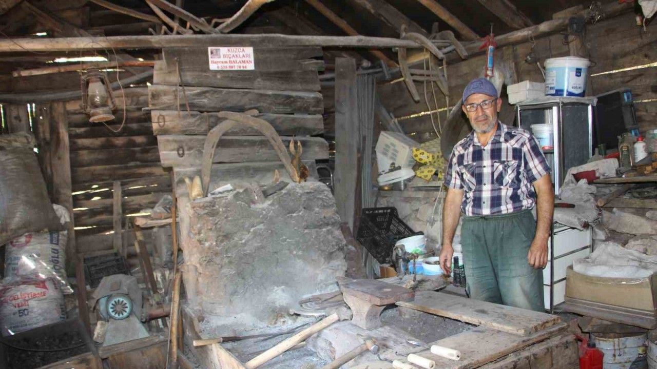 Kuzca bıçağı ustası Bayram Balaman, mesleğin babasından kendisine geçtiğini belirterek, "Babamdan kaldı, 11 yaşımda öğrendim. Bir bıçak yaklaşık 4 saat sürüyor. Özellikle yerli esmer çelik kullanıyoruz, dövme çelik. Saplarını kasaplardan temin ettiğimiz koç ve teke boynuzlarından yapıyoruz. İyi bakıldığı zaman 40-45 yıl ömrü var. Orijinal şekliyle yapan bir tek ben varım. Hazır malzeme kullanarak yapanlar var ama ben direniyorum. Mesleğin özünü, töresini koruyorum. Tamamen el işçiliği, ateşten çıkan dövme bıçak. Günlük 3 büyük, 6 küçük üretebiliyorum. Orijinalde ısrar ediyorum çünkü meslek ölürse en çok ben üzülürüm. Gönüllüsü olsa hemen öğretirim. Aslında kazandırıyor ama gençler bu sabra katlanmak istemiyor" dedi.