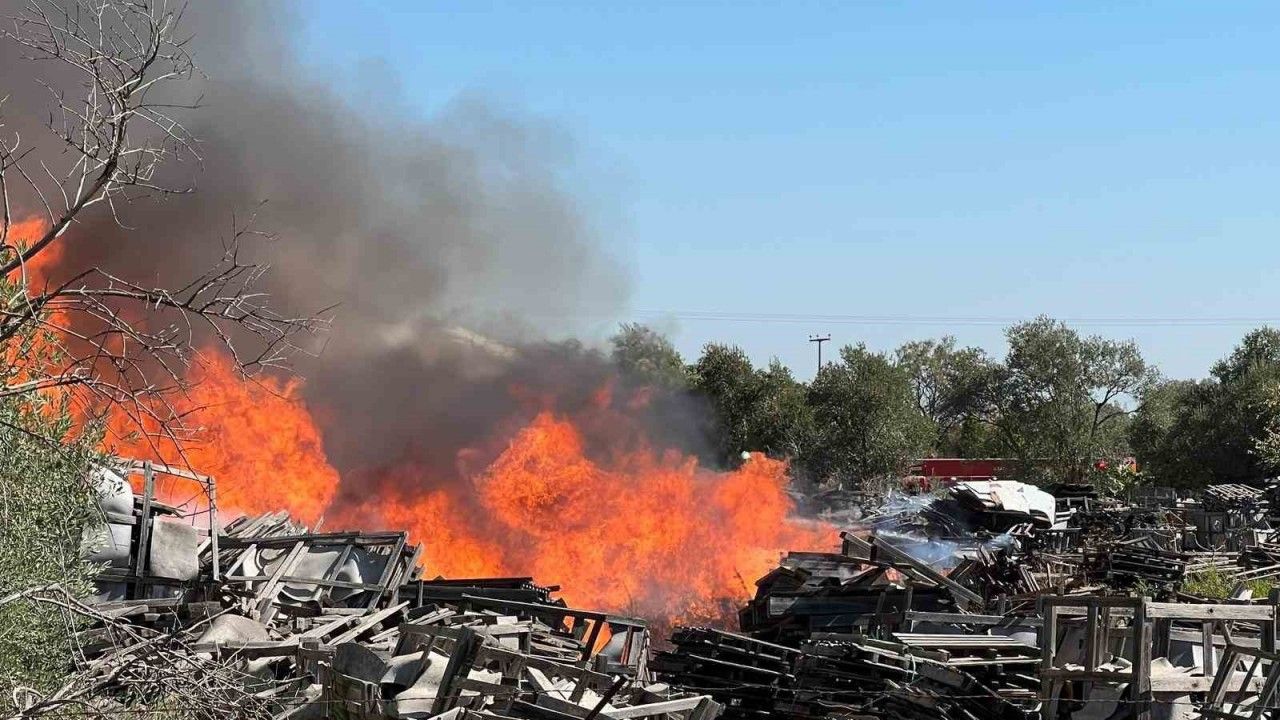 Manisa’nın Yunusemre ilçesinde faaliyet gösteren ahşap palet fabrikasında çıkan yangına Manisa Büyükşehir Belediyesi İtfaiye Dairesi Başkanlığı’na bağlı çok sayıda ekiple müdahale ediliyor.