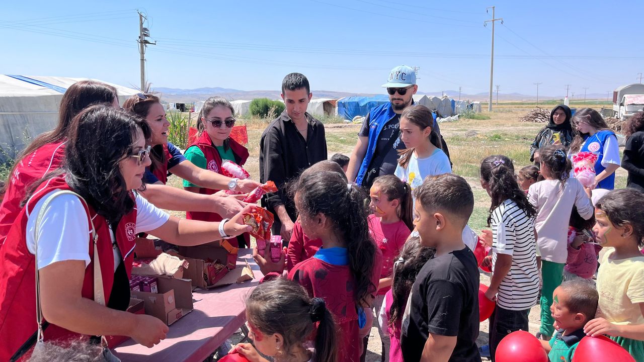 Mevsimlik işçilerin çocukları unutulmaz bir gün yaşadı Şarkılar söyleyip dans eden, çeşitli oyunlarla doyasıya eğlenen çocuklara küçük hediyeler de dağıtıldı.