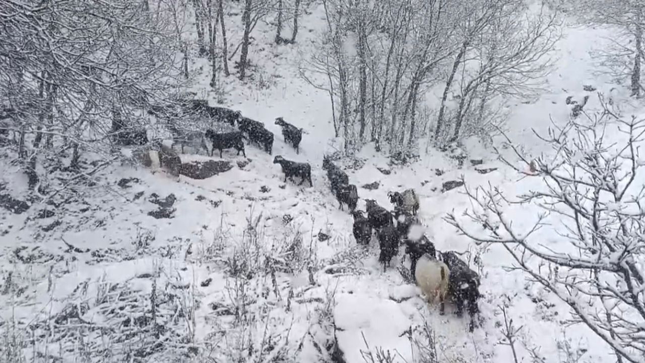 Kar yağışı sırasında güçlük yaşadıklarını belirten besicilerden Abuzer Güngör, 'Kar bu yıl biraz geç yağdı. Her ne kadar tedbirsiz yakalansak da, bu beklediğimiz bir kardı. Şu anda hayvanlarımla birlikte dağda mahsur kalmış durumdayım. Bugün kar 3-4 saat boyunca aralıksız yağdı. Eve yaklaşık 1-2 kilometrelik bir yolum var. Hayvanların hepsi ağır gebe. Onları sağ salim eve ulaştırmaya çalışıyorum' dedi.