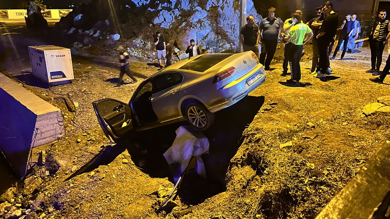 Hatay'da navigasyon takibiyle yolculuk yapan sürücünün kullandığı otomobil, yıkımı yapılan binanın boş arazisine uçtu. Kazada hasar alan araçtaki 5 kişinin burnu bile kanamadı.