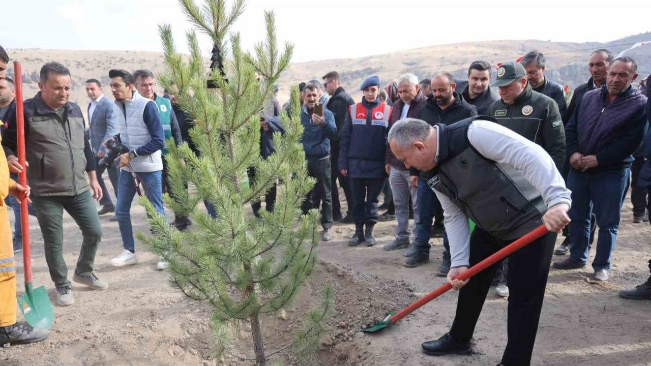 Nevşehir’in merkeze bağlı Boğaz köyünde düzenlenen programa Vali, kamu kurum müdürleri, öğrenciler ve çok sayıda vatandaş katıldı. ’Yeşil Vatan Seferberliği - Toprak Şahidimiz, Fidan İmzamız, Yeşil Vatan Sevdamız’ sloganıyla gerçekleştirilen etkinlikte, 2025 yılı fidan dikim sezonunun da startı verildi. Program, saygı duruşunda bulunulması ve İstiklal Marşı’nın okunmasıyla başladı. Ardından, fidan bağışında bulunarak etkinliğe katkı sağlayan hayırsever Yavuz Armağan’a Vali Ali Fidan tarafından plaket takdim edildi. Nevşehir Orman İşletme Müdürlüğü yetkilileri, 11 Kasım Milli Ağaçlandırma Günü’nün 2019 yılında yayımlanan Cumhurbaşkanlığı Genelgesi ile ilan edildiğini hatırlatarak, etkinliklerin amacının çevre bilincini artırmak, orman varlığını korumak ve gelecek nesillere daha yeşil bir Türkiye bırakmak olduğunu ifade etti. Etkinlikte, yıl sonuna kadar il genelinde toplam 400 bin fidanın toprakla buluşturulacağı belirtildi. Vatandaşların www.gelecegenefes.gov.tr adresi üzerinden ya da etkinlik alanında kurulan stantlardan ücretsiz fidan sahiplenebileceği duyuruldu.