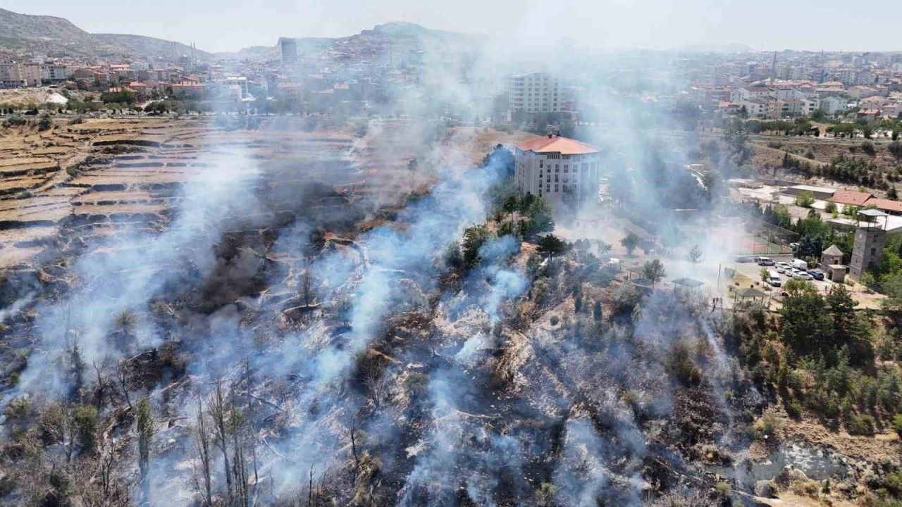 Nevşehir’de ağaçlık alanda çıkan arazi yangını İl Emniyet Müdürlüğü Ek Hizmet Binasına ulaşmadan kontrol altına alındı. Yaklaşık 100 dönümlük arazide çıkan yangına polis ekipleri yangın tüpü ve TOMA araçları ile destek verdi.