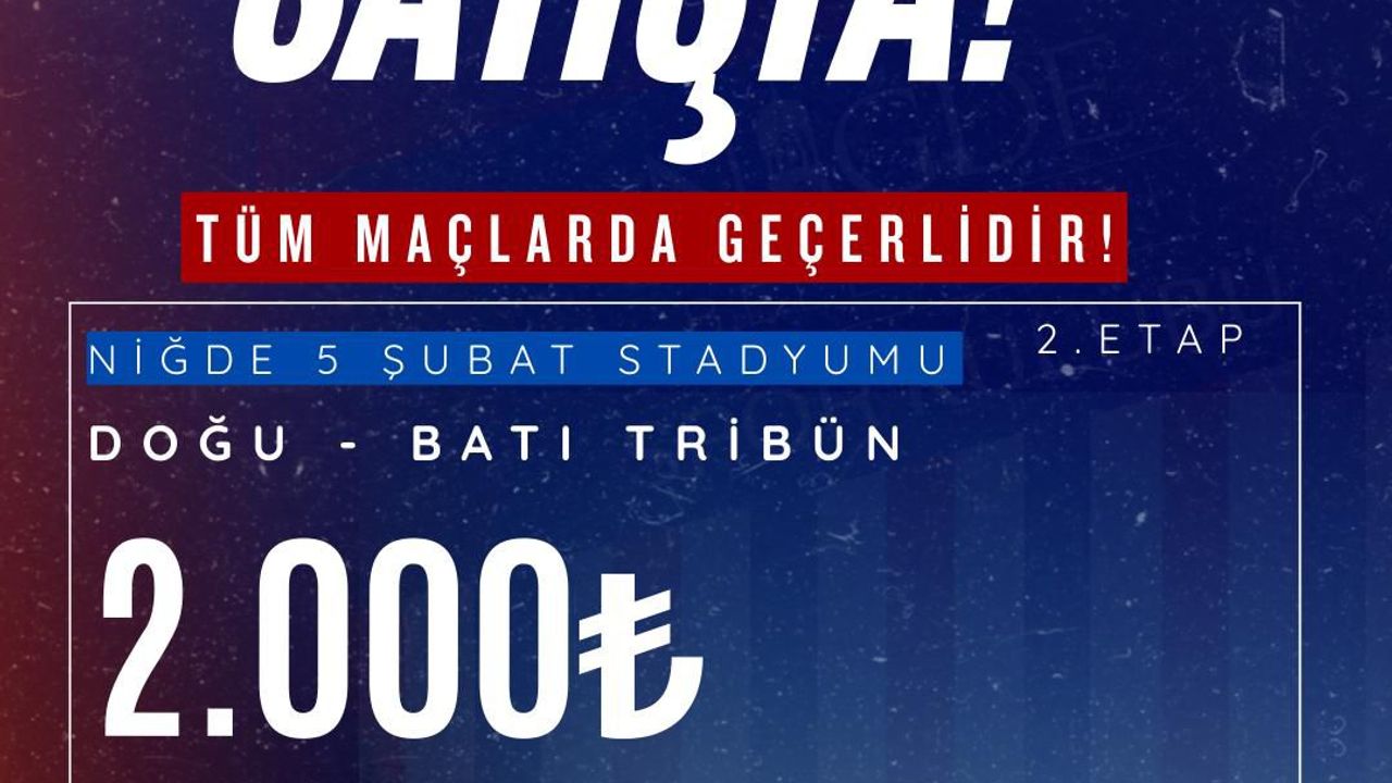 Satışların, Niğde 5 Şubat Stadyumu bilet gişesinden yapıldığı belirtildi. Açıklamada, “Tüm Niğde halkını ve taraftarlarımızı takımımızın yanında olmaya, tribünleri kırmızı lacivert coşkuyla doldurmaya davet ediyoruz.” ifadelerine yer verildi.