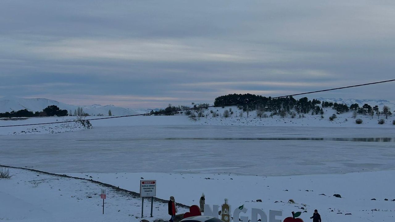 Niğde’de geçtiğimiz günlerde etkili olan soğuk hava, Gebere Mesire Alanı’ndaki gölü tamamen buz tuttu.
