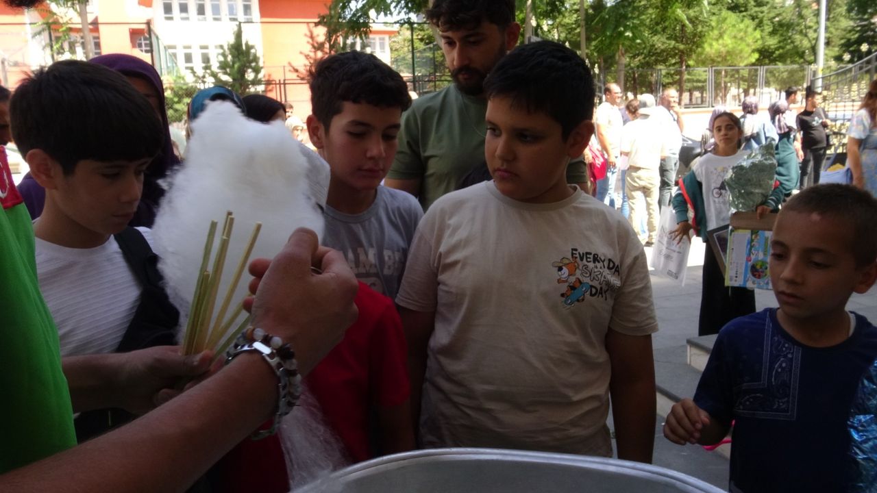 Kur'an-ı Kerim eğitimi alan öğrenciler, kursun sona ermesi dolayısıyla düzenlenen programda hem eğlenceli vakit geçirdi hem de sürpriz pamuk şeker ikramıyla mutlu oldu.