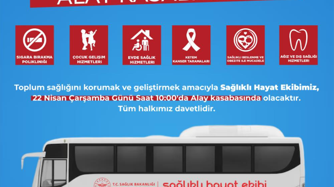 Niğde İl Sağlık Müdürlüğüne bağlı mobil sağlık timleri, birinci basamak sağlık hizmetlerini kentin en uzak noktalarına ulaştırmak amacıyla 22 Nisan Çarşamba günü Alay Kasabası'nda vatandaşlarla bir araya gelecek.