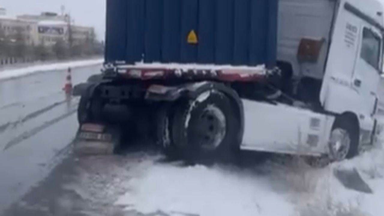 Edinilen bilgiye göre, kar yağışı ve buzlanma nedeniyle kontrolden çıkan tır yolu kapattı. İhbar üzerine bölgeye polis ve karayolları ekipleri sevk edildi. Kazada yaralanan olmazken trafik kontrollü sağlanıyor.