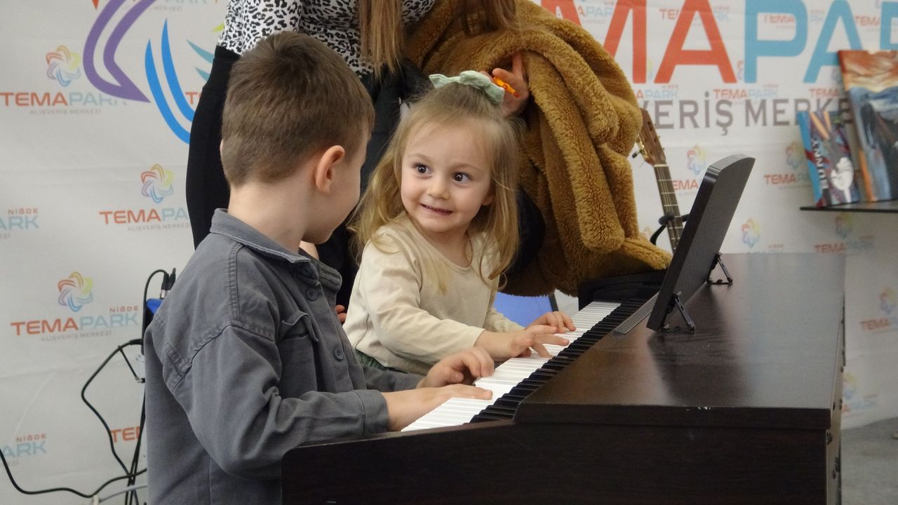 Niğde TemaPark AVM’de gerçekleştirilen ritim etkinliği ve yüz boyama etkinliğinin ardından çocuklar sahnede piyano çaldı. Etkinlikte sahneye çıkan çocuklar, sıralı bir şekilde piyano başına geçerek performans sergiledi. Piyano çalan çocuklara, yanlarında bulunan eğitmenler yardımcı oldu. Çocukların müzikle buluştuğu etkinlik, aileler tarafından ilgiyle takip edilirken, etkinlik alanında keyifli anlar yaşandı.