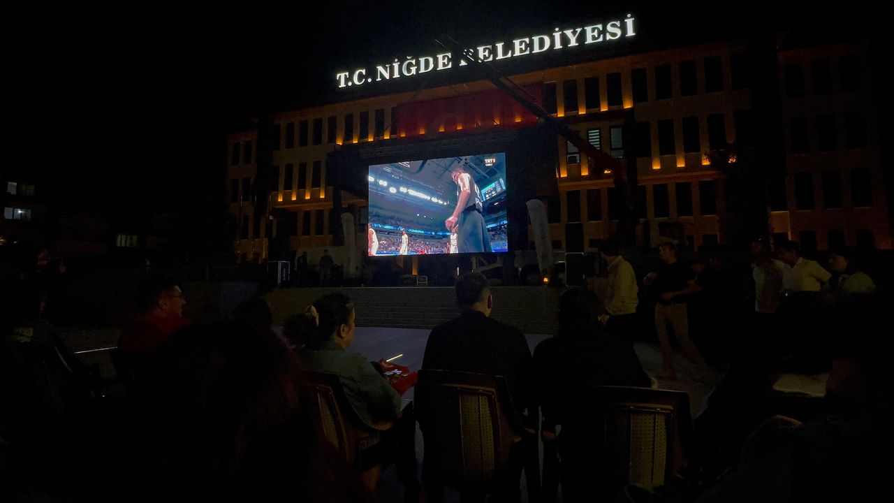 Niğde Belediyesi, A Milli Erkek Basketbol Takımı’nın Almanya ile oynadığı final karşılaşması için belediye önüne dev ekran kurdu.