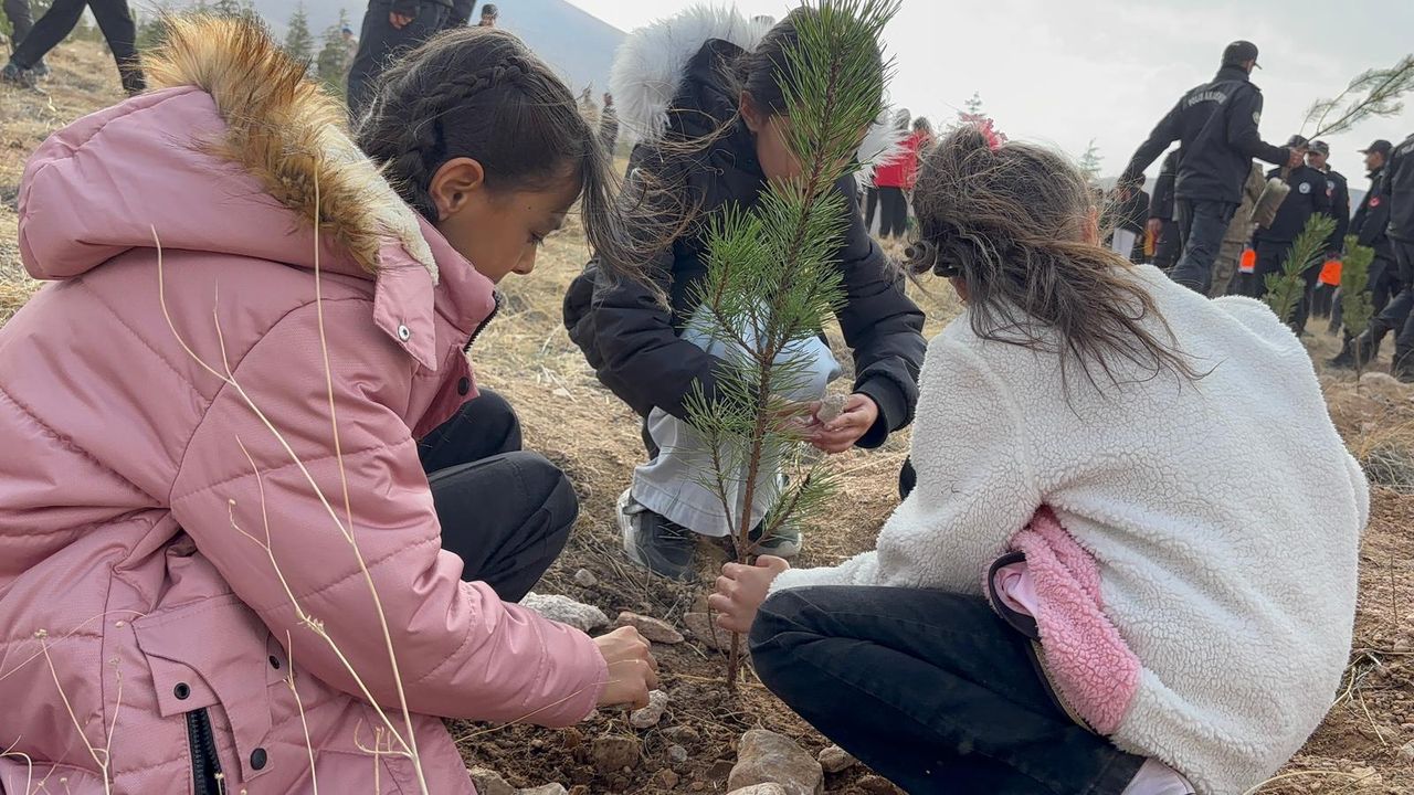 Konuşmaların ardından katılımcılar, aynı anda yüzlerce fidanı toprakla buluşturarak can suyu verdi