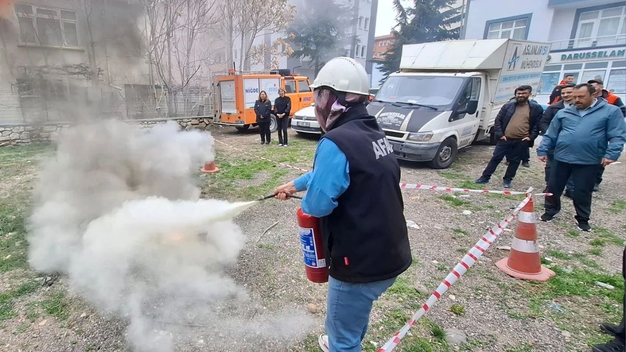Ayrıca eğitim kapsamında, yangın söndürme cihazlarının doğru ve etkili kullanımı uygulamalı olarak personele aktarıldı.