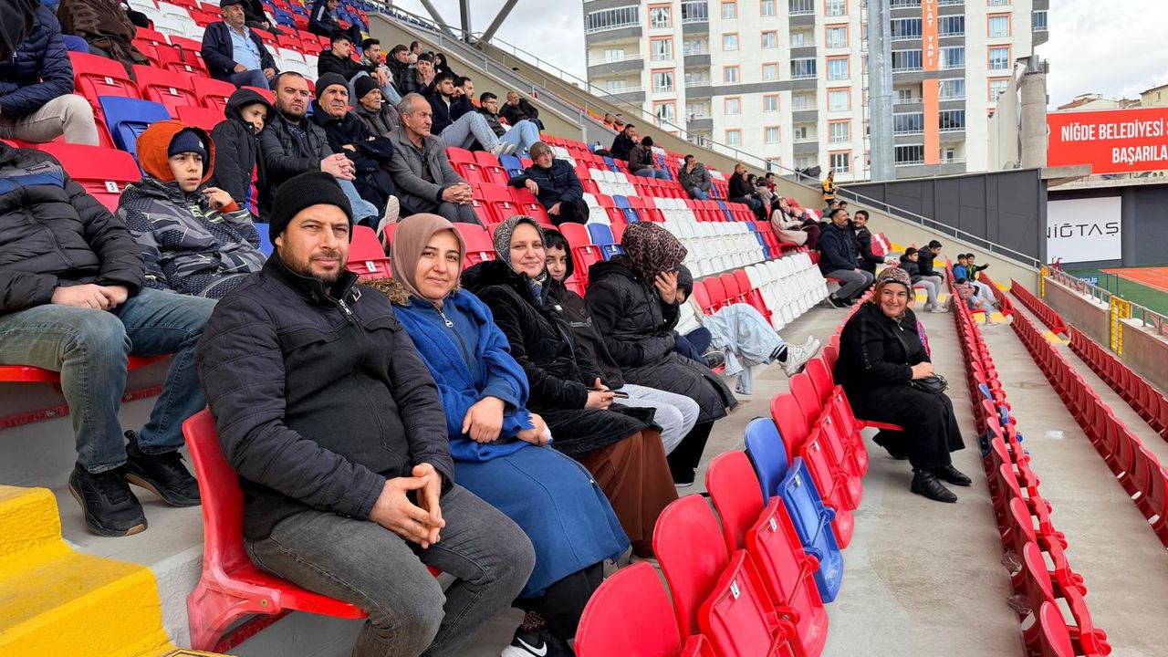 Niğde 5 Şubat Stadyumu’nda oluşturulan aile tribününde, aileler çocuklarıyla birlikte Niğde Belediyespor ile Silifke Belediyespor arasında oynanan karşılaşmayı izledi. Karşılaşmayı, Nedim Akmeşe de tribünden takip etti. Aile tribününde yer alan vatandaşlar, çocuklarıyla birlikte maçı güvenli ve huzurlu bir ortamda izleme imkânı bulduklarını belirtti.