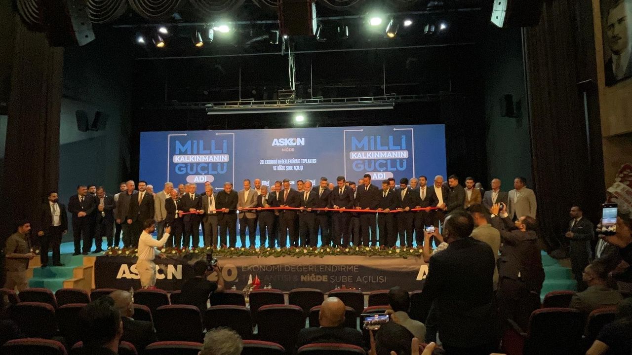 Anadolu Aslanları İş Adamları Derneği (ASKON), 20. Ekonomi Değerlendirme Toplantısı’nı Niğde’de gerçekleştirdi. Toplantı kapsamında ASKON’un Niğde Şubesi de düzenlenen törenle açıldı. Programa, ASKON Genel Başkanı Orhan Aydın, Niğde Valisi Cahit Çelik, Niğde Belediye Başkanı Emrah Özdemir, Niğde Ömer Halisdemir Üniversitesi Rektörü Prof. Dr. Hasan Uslu, iş insanları, sanayiciler ve yerel yöneticiler katıldı.