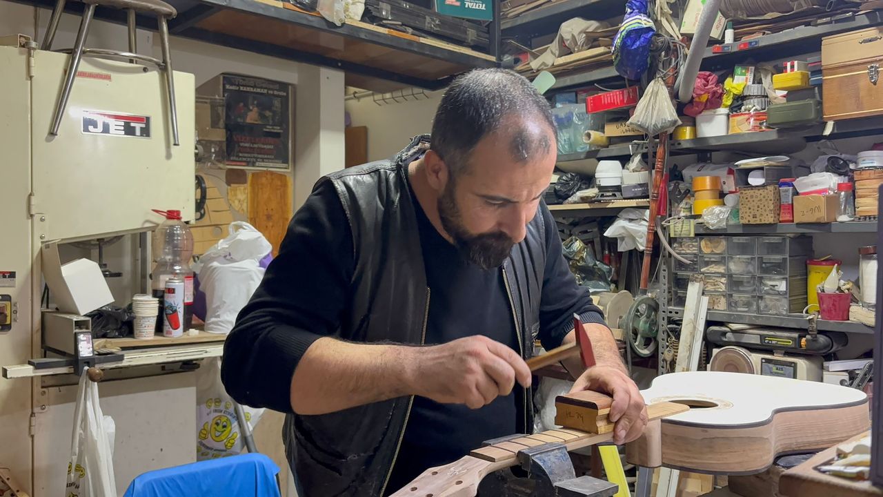 “İlk gitarımı yapmam 5-6 ay sürdü.” diyen Kahraman, zamanla bu alanda uzmanlaştığını belirtiyor.