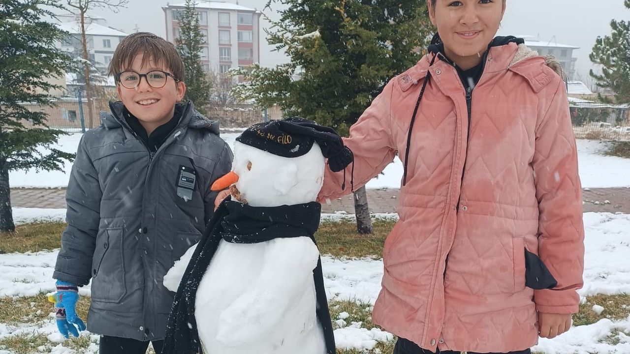 Sabah saatlerinde etkili olan kar yağışı kısa sürede cadde ve sokakları beyaza bürürken, çocuklar da ara tatili fırsat bilerek vakitlerini dışarıda geçirdi. Mevsimin ilk karını gören çocuklar kardan adam yaparak eğlenceli anlar yaşadı.