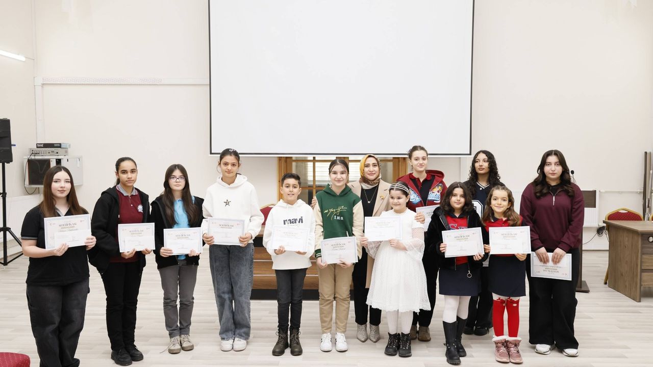 Dilimizin zenginliğini tanımalarına, söz varlıklarını geliştirmelerine ve Türkçeyi bilinçli kullanmalarına katkı sunan çalışmalarla başarı elde eden öğrenciler tebrik edilirken, sürece emek veren öğretmenler ile okul idarecilerine teşekkür edildi.