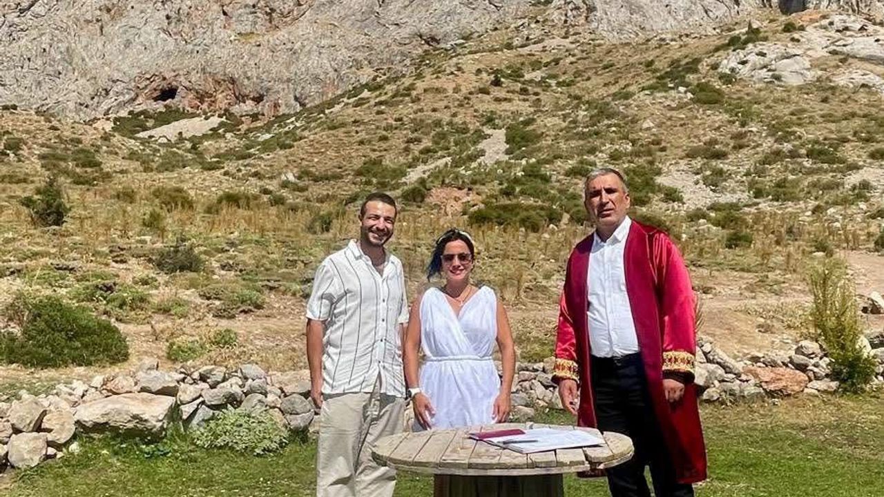 Meltem ve Gökhan çiftin isteği üzerine Sokulu Pınar Kamp Merkezi’nde nikahları kıyıldı.
