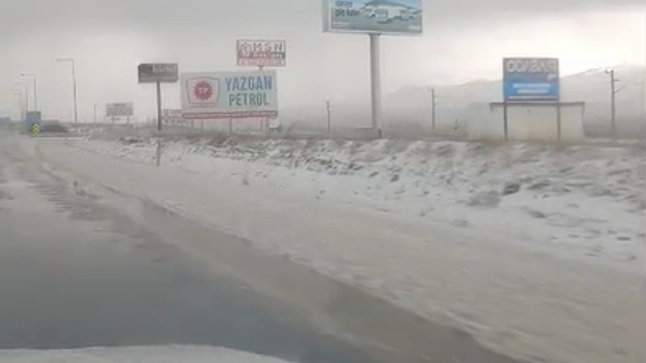Niğde’de aralıklarla devam eden sağanağın ardından başlayan dolu, özellikle bazı yerlerde etkisini artırarak yolları beyaza bürüdü.
